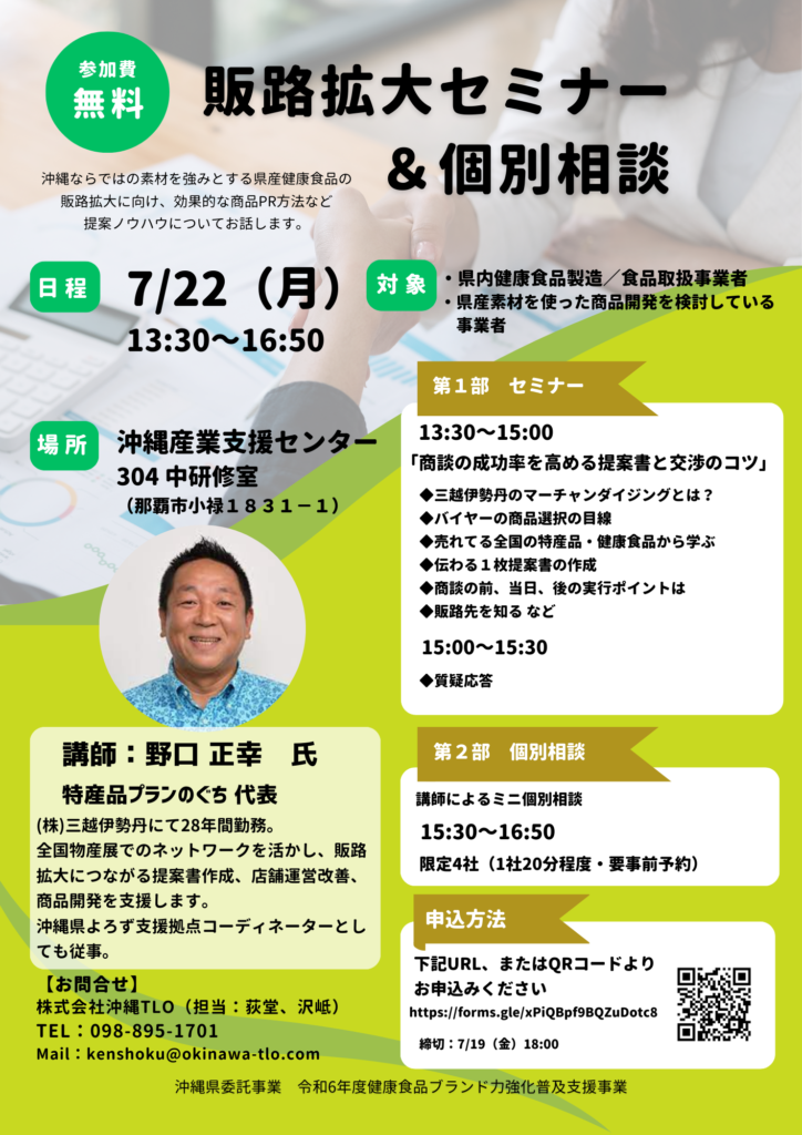 【7/22開催】県内食品製造・取扱事業者向け 販路拡大セミナー&個別相談のお知らせ